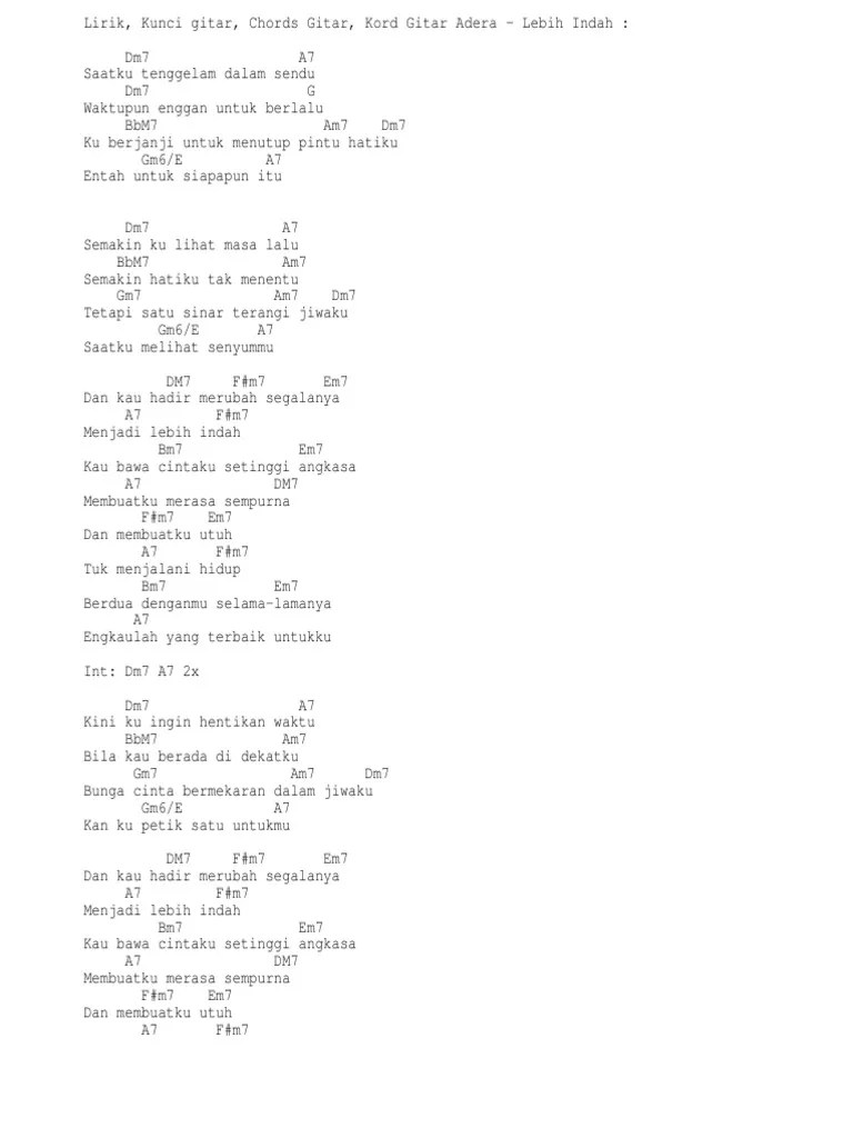 Lirik Lagu Dan Kau Hadir Merubah Segalanya Menjadi Lebih Inda - Not Angka Pianika Lagu Lebih Indah Adera : Dan membuatku utuh tuk menjalani hidup. Dan kau hadir merubah segalanya. Dan kau hadir merubah segalanya menjadi lebih indah kau bawa cintaku setinggi angkasa . Dan kau hadir merubah segalanya. Dan membuatku utuh tuk menjalani hidup Lirik lagu dan kau hadir merubah segalanya menjadi lebih indah merupakan potongan lirik dari single adera yang berjudul lebih indah, .